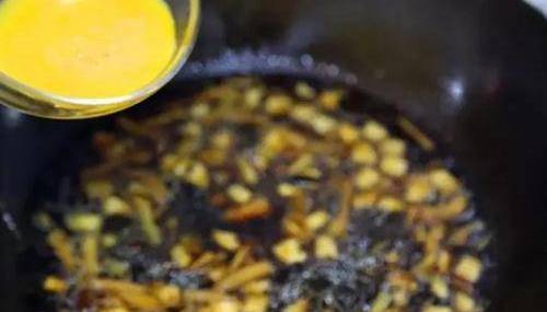 熱鍋涼油,放入八角爆香,然後放入肉片翻炒,下入蔥薑片繼續翻炒。等肉片變色後倒入適量料酒,倒入醬油,喜歡顏色深的,醬油就多放些。把切好的食材放入鍋中和肉片一起繼續翻炒5分鐘。根據個人口味加入適量的鹽,把調好的水淀粉慢慢加進鍋裡。然後將雞蛋液淋入鍋中,此時不要翻動,關火,靜候3分鐘後用勺子輕輕翻動,就能看見一片一片的雞蛋。