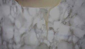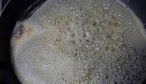 準備二根筷子.或直接用刮刀.筷子二根沾糖水再分開.能拉出細絲就是好瞭.我一隻手實在拍不瞭.我就用瞭刮刀的.刮刀提起.流下的糖漿.能拉出細絲.也就是好瞭.如果用熬糖溫度計的.一般116度左右就行!太高瞭成品會很硬!推薦用筷子!!!