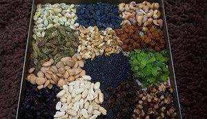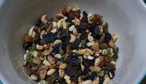 堅果用伱喜歡的就好!我的有:開心果.黑加侖.腰果.青葡萄幹.核桃.桂圓肉.杏仁.黑芝麻.獼猴桃幹.蔓越莓幹.花生.紅葡萄幹.紅棗幹.