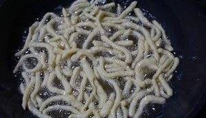 鍋中放油.中小火加熱...!油熱後.丟一根面條下去.能快速浮起就是好瞭.我這個.好吧.我試瞭好幾根才行!