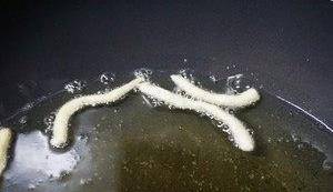 放入鍋中.用筷子快速劃拉開.就是如圖這樣瞭!