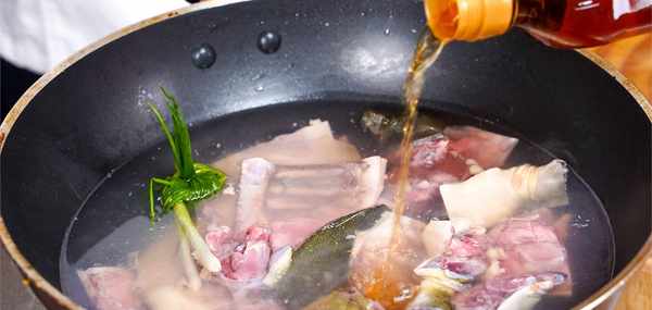 我們調制一款特色醬汁:花雕酒50克 老抽15克 生抽30克 鹽5克 糖5克 味精5克 胡椒粉3克 加入少許高湯適量,最後加入少許的玉米淀粉,我們湯汁攪拌均勻即可。根據個人口味進行微調!