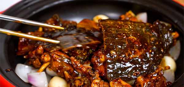 中間我們可以適當在我們的砂鍋蓋上加入花雕酒,這樣酒香和黑胡椒香一起融合進來!