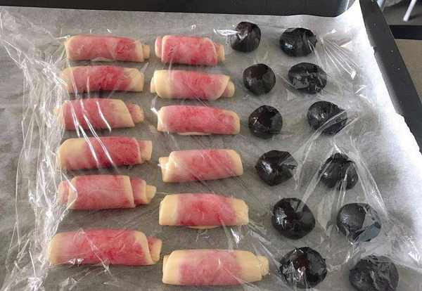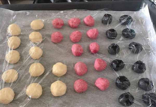 步驟一:準備食材水油皮:低筋面粉120克,水50克,糖20克,黃油45克,鹽一小撮,油酥:低筋面粉100克,黃油50克,粉色色素1到2滴,餡料裝飾:紅豆沙餡180克。蛋黃液適量,白芝麻適量。