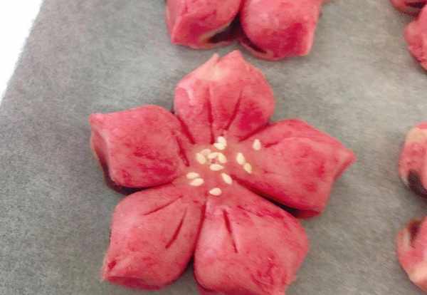 步驟九:花中間刷上蛋液,撒上白芝麻。