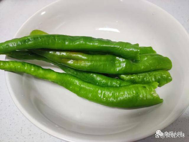 1.今天選用的是這一種線椒,這種的辣椒口感相對會辣一點,但是如果說敢吃辣的人,對於他們來說會更加好。我個人也是挺喜歡吃辣的,香香辣辣的食材更加開胃。備好的辣椒給它放在清水中沖洗一下表面,表面洗凈瞭之後用手把青椒的蒂給它扯出來。然後掏出裡面的青椒籽,再用清水沖洗一下。洗幹凈後的青椒放在案板上,切成喜歡的大小。處理好後的青椒放在盆中備用;