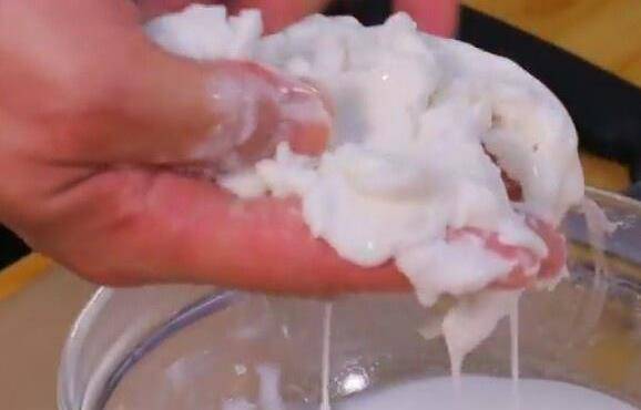 2、沉淀下來的淀粉糊應該呈現出:用手抓起時是硬塊,但很快就會呈現出自然流淌狀態;