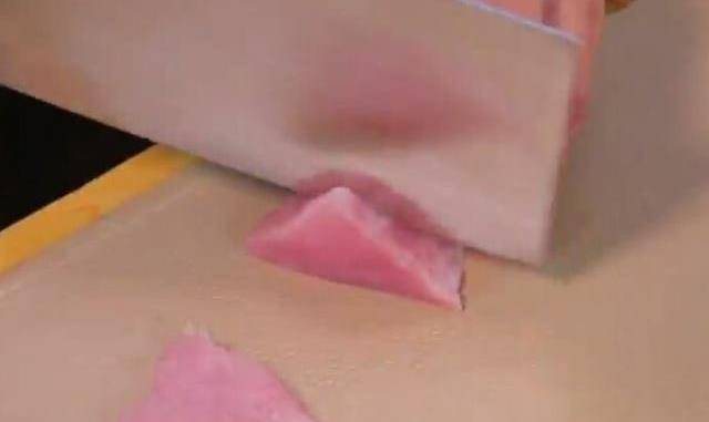 1、將豬裡脊肉改刀成厚片(5毫米左右),放入清水中用手抓洗、浸泡,目的是去除肉中的血水;