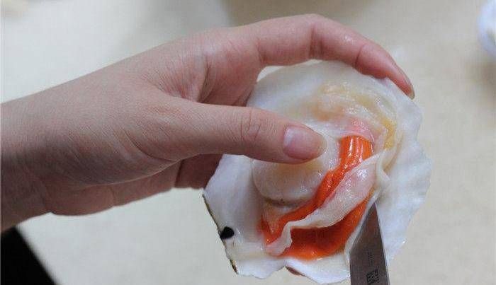 2、扇貝邊緣睫毛狀的黃邊和黑色的包塊要全部處理幹凈,不能食用。