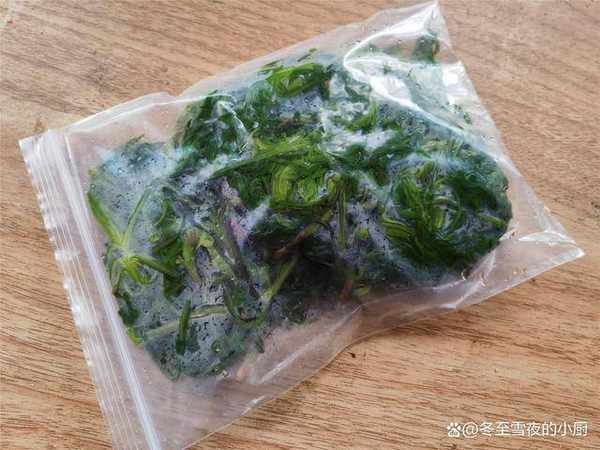 6.把柳蒿芽按平時吃的量,分成份,各自裝進保鮮袋內,放冰箱內冷凍保存,吃時,如果做湯,不用解凍,直接放湯裡,炒食或者蘸醬,直接室溫解凍即可食用。
