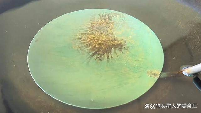 5.起鍋燒油,勺子提前放進去預熱。用最小火預熱一下。