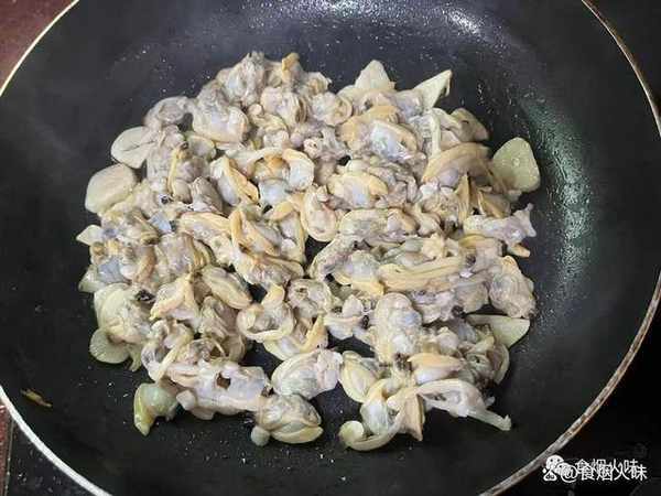 2.花蛤肉下鍋炒的時候,建議用大火快炒,鏟子多翻動,可以更好低將它炒至入味好吃。