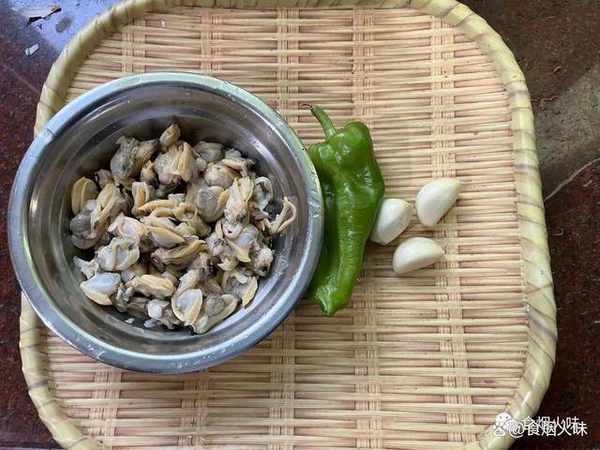 花蛤,蒜瓣,青椒,食鹽,食用油,蠔油