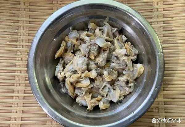 1.取花蛤肉的時候,要先將它下鍋焯水。花蛤開口之後就要立馬撈出來瞭,以免它會煮太老瞭;