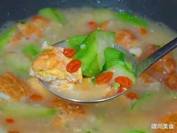 3、鍋留底油,放入絲瓜煸炒五時尚,放入雞蛋和一碗清水,加入鹽和胡椒粉即可。