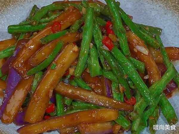 3、再把茄子也煎一下,鍋留底油,放入蔥花、蒜末、小米辣,炒出香味,再放入豆角和茄子,淋調好料汁,翻炒均勻,大火收汁即可。