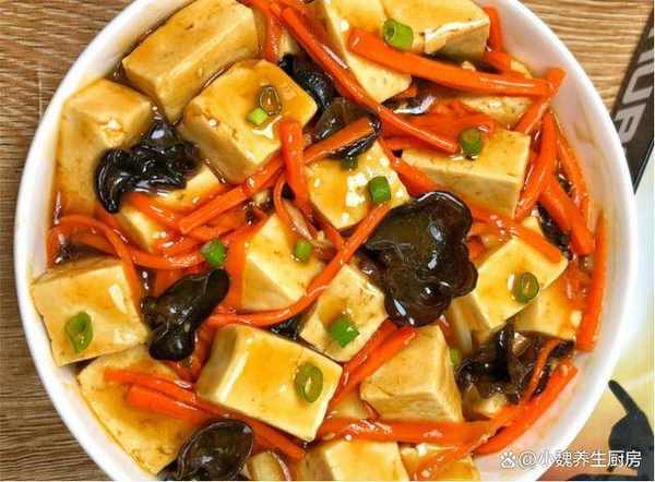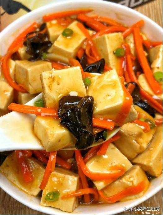 魚香豆腐是我傢娃娃最愛的菜肴,豆腐入口即化,鮮嫩美味,搭配胡蘿卜和木耳炒一盤,色澤非常好看,補充胡蘿卜素,維生素和鈣元素,能夠滿足日常所需的營養,利於各種營養的消化和吸收,食欲大增。