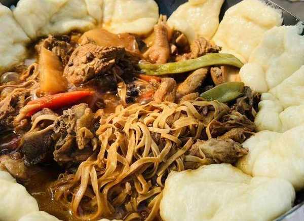 準備食材:一隻雞,香菇6個,土豆2個,千張2張,蔥薑蒜適量,花椒,八角,桂皮,香葉適量,幹辣椒6個、面粉300克,溫水170克,鹽1克