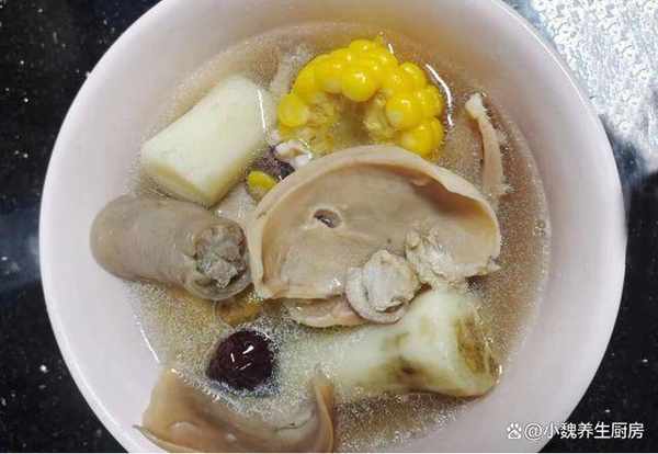 步驟8:關火出鍋,這道玉米墨魚豬尾湯就制作完成瞭。