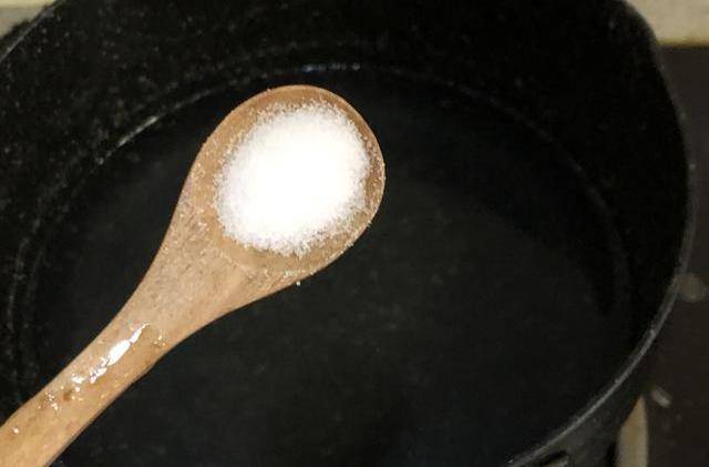 2、接下來,在小鍋內加入適量的清水,再放入少許的鹽,將鍋中的水煮至沸騰。