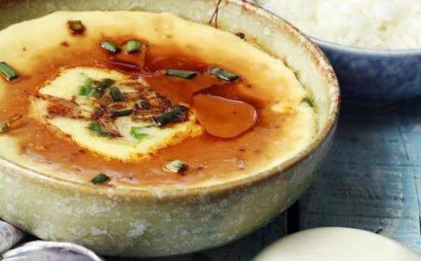 豉油皇蒸水蛋:將雞蛋倒入量杯。倒入兩倍的涼白開。輕輕打散,攪拌均勻;倒入橄欖油攪拌均勻。過篩之後倒入蒸蛋容器中撒少許蔥花。在蒸蛋容器上蓋上一個碟子.蒸鍋中放水,開鍋後放入蛋羹,中火蒸10分鐘。出鍋後倒入海天醬油,放香油,點綴少許香蔥即可食用。