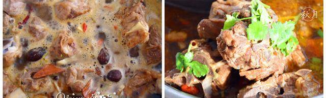 7.倒入適量水,以沒過羊蠍子為宜。放入小茴香、白子、草果、香葉、桂皮、砂仁、畢卜等慢燉兩小時左右