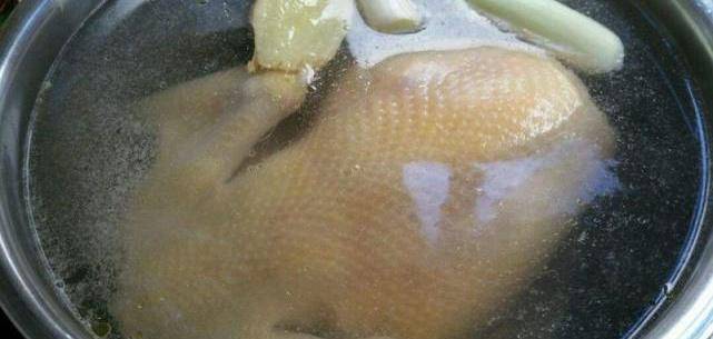3.整雞下鍋,煮熟,等到用筷子可以戳破雞時,即可撈出
