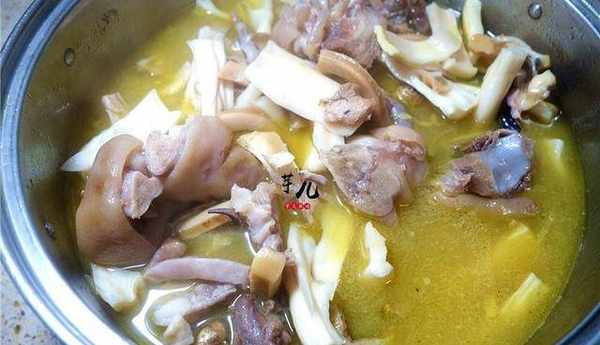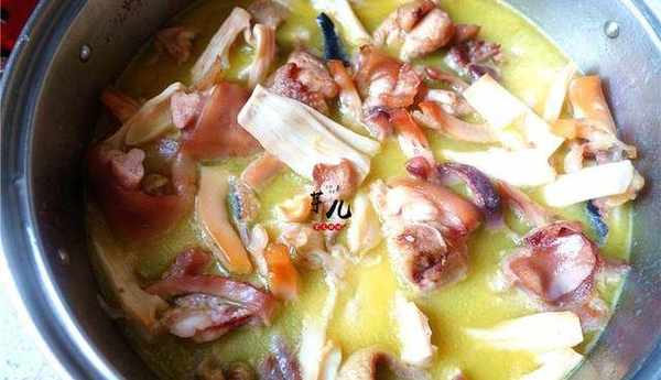 14.燒至豬蹄用筷子輕輕一戳就爛,就好瞭,放入適量鹽翻勻起鍋。