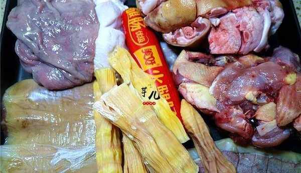 5.將汆過水的豬蹄,雞肉,豬肚魷魚和墨魚絲大集合。