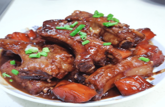 食材準備:排骨、鹽、蔥薑、八角、幹辣椒、桂皮、冰糖、生抽、老抽