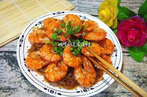 【香辣粉絲蝦】用料:新鮮基圍蝦400克,粉絲一卷,生抽,辣椒醬,番茄醬,蔥薑蒜,白糖,料酒,食用油。