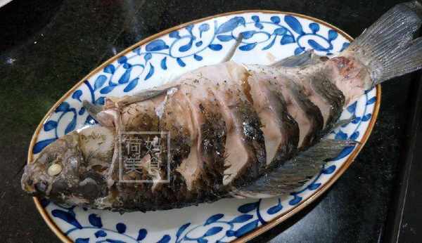 6、蒸好的魚去掉薑絲,我換瞭個盤子來裝。如果不換魚盤,記得把魚盤裡的湯汁倒掉。