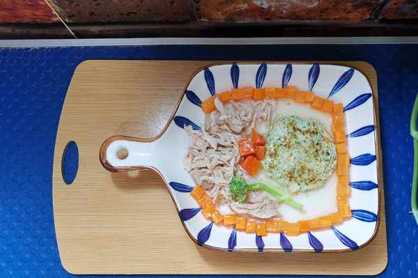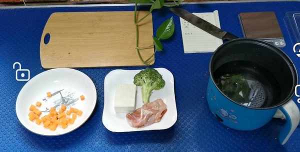 材料:雞肉60g西藍花40g豆腐60g胡蘿卜10g
