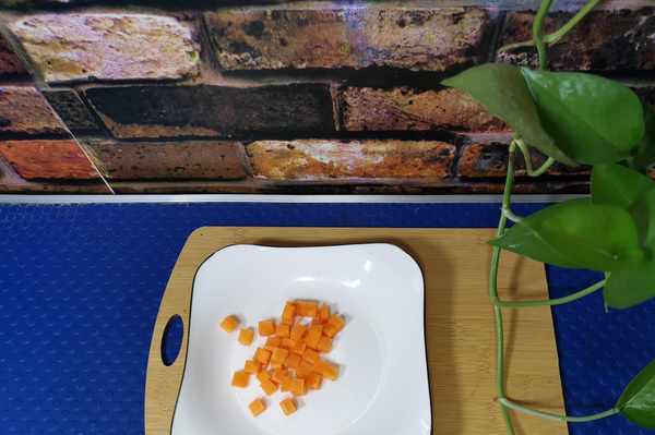 和貓罐頭湯汁一起熬煮一會兒,註意不要放太多胡蘿卜丁,影響湯汁口感,不吃胡蘿卜的貓咪可以省略不用。