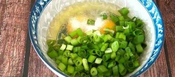 今天跟大傢分享早餐餅最簡單快速的做法,15分鐘輕松搞定。首先在盆中倒入三克酵母,5克白糖促進發酵,再倒入溫水250毫升邊倒邊攪拌,用筷子把酵母充分攪拌融化就可以瞭。再倒入300克普通面粉,少量多次地加入,一定要邊倒邊攪拌,一直攪拌到這種比較濃稠的面糊狀就可以瞭。上蓋子發酵至兩倍大,也可冷藏發酵一個晚上,在碗中打入三個雞蛋,再放入切好的蔥花。加入適量的鹽調味,用筷子把蛋液攪拌均勻備用。