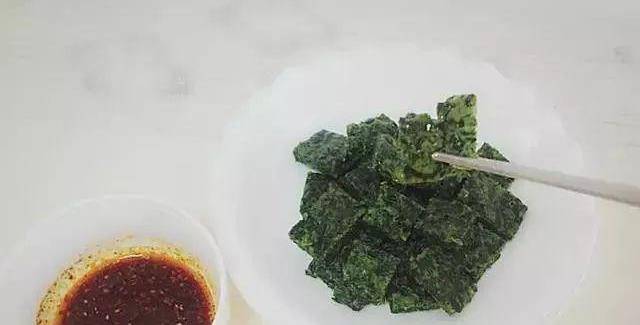 菠菜切碎加一點食用堿和食鹽拌勻,放置幾分鐘加面粉拌勻,鍋燒開將其鋪在打濕得籠佈上鍋蒸7到8分鐘蒸好後取出涼涼5分鐘,剝離切塊