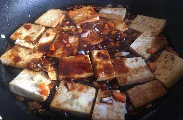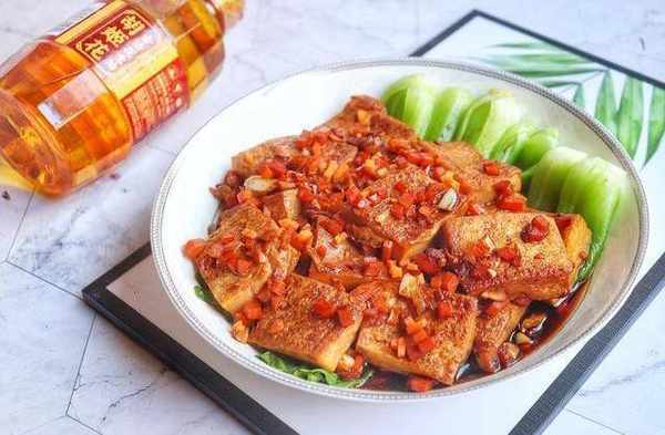 傢常豆腐,一種老少皆宜的傢常菜,尤其沒有特別強的季節性,一年四季都適合食用。經歷瞭炎熱的天氣,食欲不振的狀態明顯好轉,此時蛋白質含量高、營養豐富的豆腐更能溫補我們的身體。煎的雙面金黃的豆腐,搭配微紅的胡蘿卜丁、微黃的生薑末、若隱若現的白色蒜碎,吸滿瞭特意調配的湯汁,入口一塊讓人齒頰留香,配飯下飯,老人小孩超愛吃!