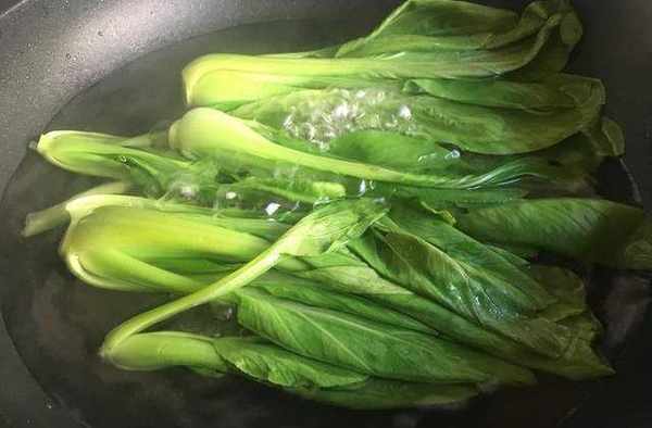 2、將整顆小青菜擇掉外層黃葉,再清洗幹凈,尤其是根部內層泥沙,洗凈後放入煮沸的清水中焯熟焯變;