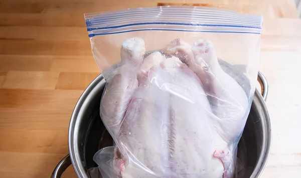 如果您擔心袋子破掉,請將袋裝雞肉放入冰箱中的大鍋或烤盤中。