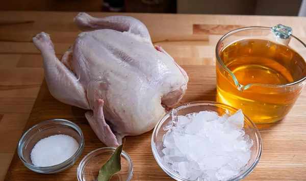 將鹽水倒在雞肉上,冷藏12-24小時。