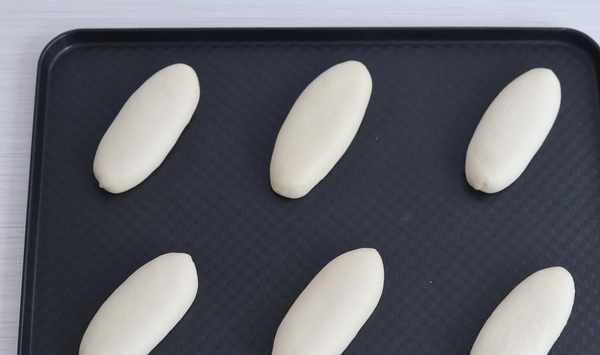 10輕輕搓成橄欖形,擺入烤盤裡,面團之間要留出一定的空間。放在35度左右的環境裡發酵至1.5倍大,用指腹輕按表面,緩慢回彈即可。