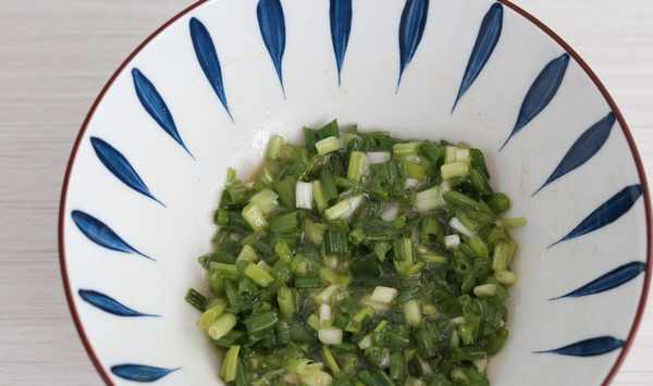 餡料:小蔥100克、蛋清20克、橄欖油20克、白胡椒粉少許、鹽少許