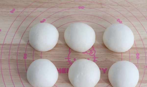 6面團放在揉面板上輕拍排氣,均分成6份,滾圓,靜置松弛10-20分鐘。