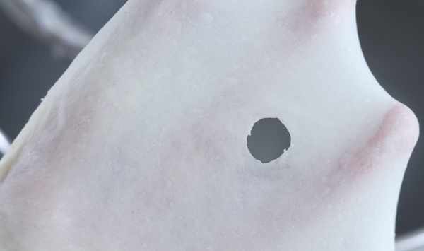 2低速攪打到無幹粉後,轉中高速攪打至面團光滑有彈性,能抻出較厚的膜,破口處的邊緣可以看到明顯的鋸齒狀。