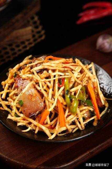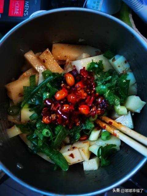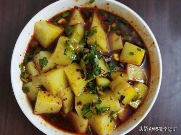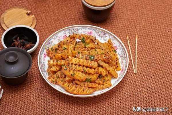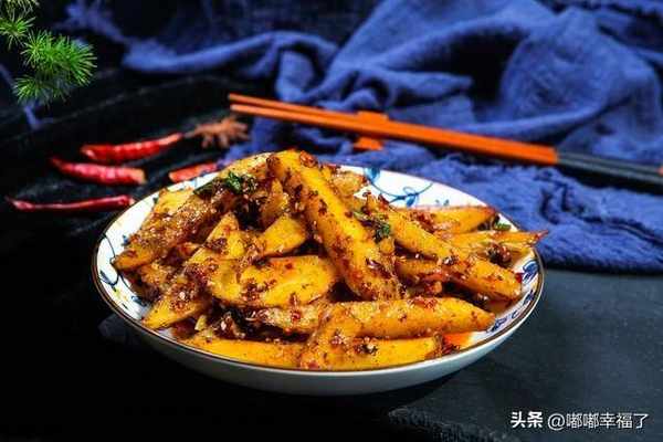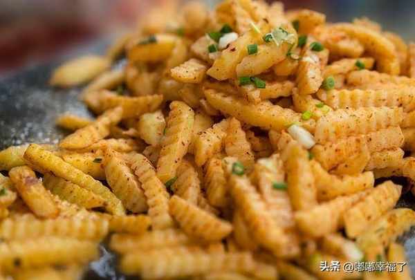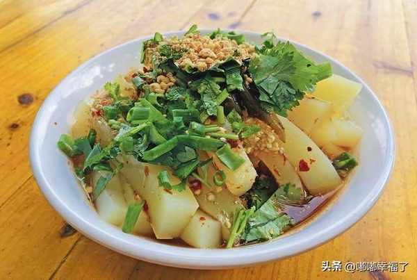把那個土豆切成小塊,使勁在油裡面炸,炸熟瞭帶點焦黃的時候撈出來,灑上辣椒面,折耳根,香菜,蔥花,蘿卜丁,還有其它的配菜,拌勻瞭,就可以瞭,特別好吃。