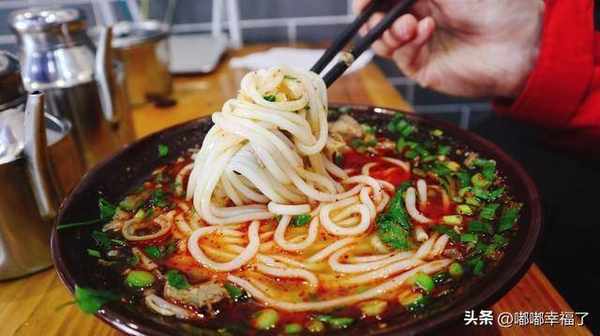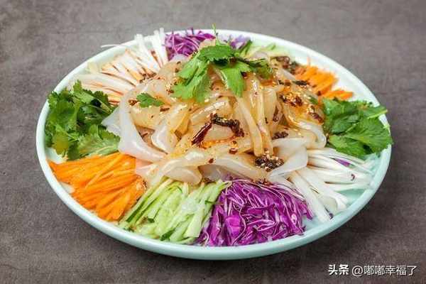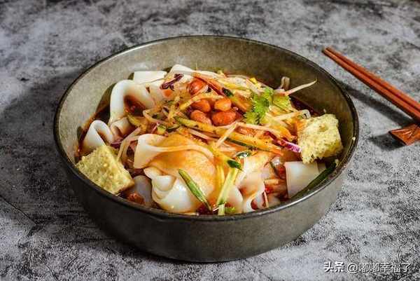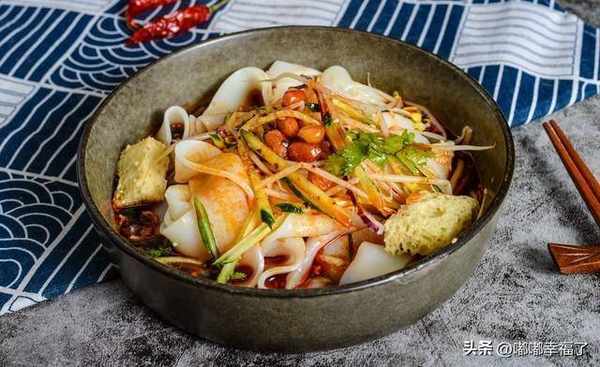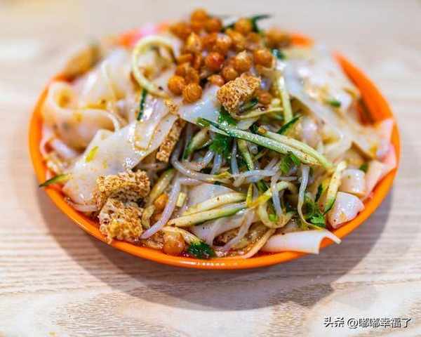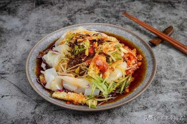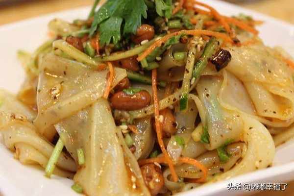 用大米做的,弄點辣椒油潑上去,再搞點蔥花灑上去,氣質是那種滑美爽口,在夏天的時候特別讓人嘴饞,因為吃瞭可以讓人變涼快,很解悶。