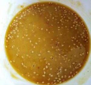 待發面的過程中準備油酥,幹面粉,五香粉,鹽,芝麻放碗裡,食用油燒熱澆到碗裡,立即用勺子攪拌均勻即可