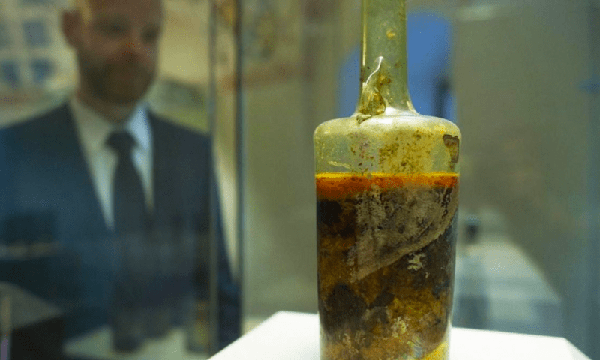 但根據從酒瓶外部對內部時尚的觀察分析,這個1700年的終極陳釀葡萄酒,裡面不僅有傳統的葡萄酒,還添加瞭各種草藥混合物,以及大量的橄欖油。