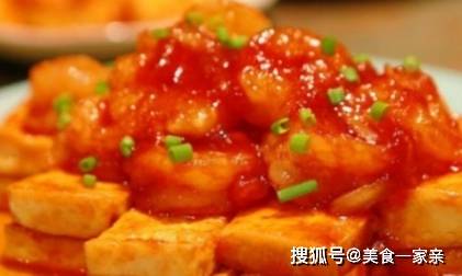 8.放入蝦仁炒至略變色,倒入番茄醬汁和豆腐丁