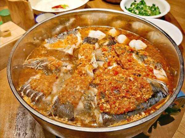 明爐壇椒大魚頭,整個魚頭被兩種辣椒包裹一起蒸,偏辣的重口味,魚頭鮮嫩,但醬汁有點點咸,裡面還有水晶包一起,湯汁這個辣椒外地朋友還是需要慎入。
